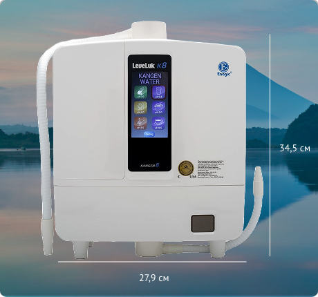 Укомплектован электролизной камерой с семью титановыми пластинами с платиновым покрытием. Благодаря этому вы можете легко получить 4.5-7.5 литров полезной воды Kangen за минуту.